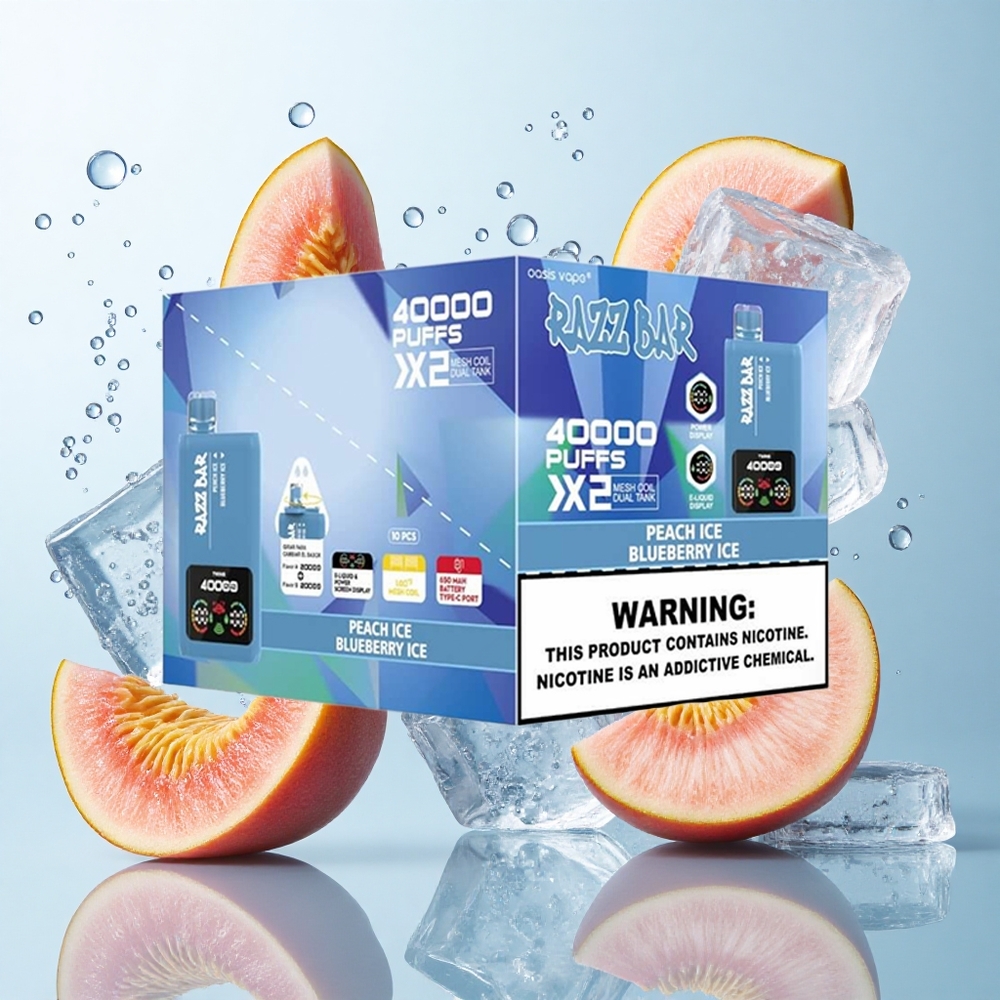 Razz Bar 40000 Tragadas Pêssego Gelo_Mirtilo Gelo Tipo-C 650mAh