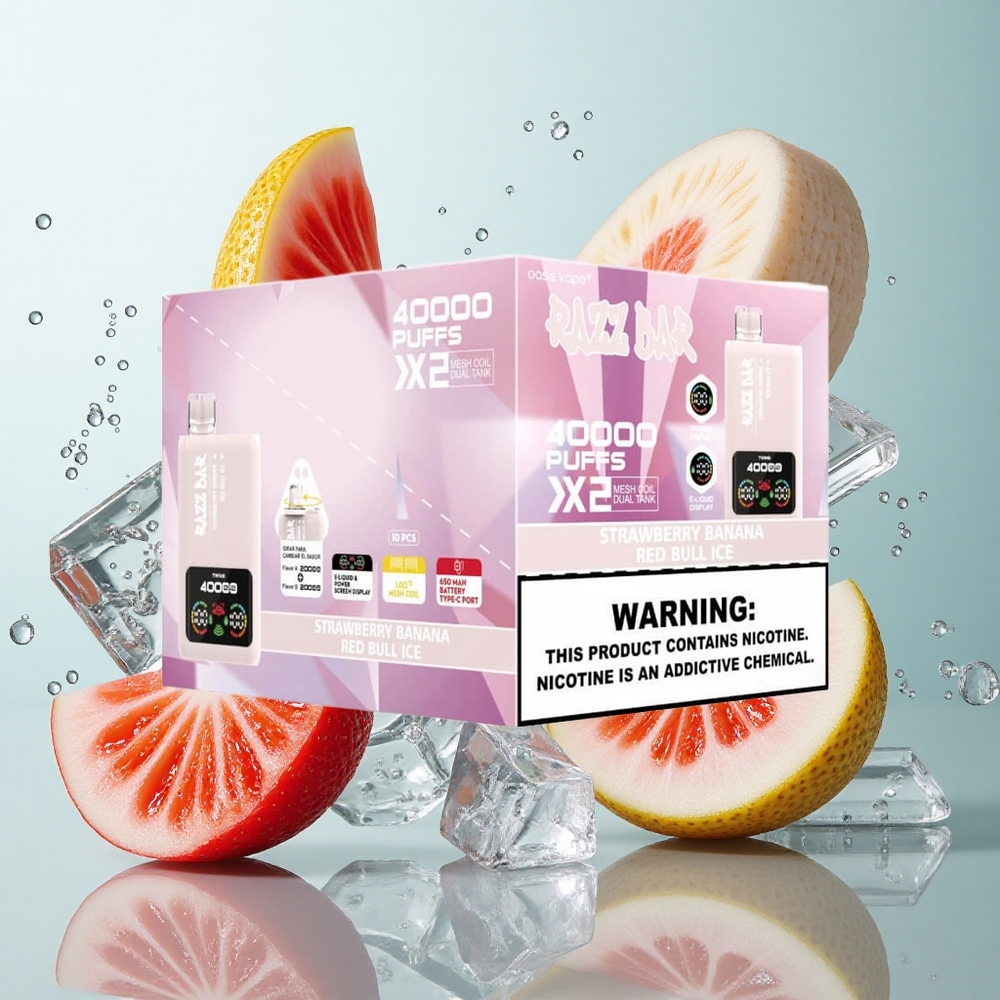 Razz Bar 40000 Tragadas Vape Descartável Morango Banana_Red Bull Ice Tipo-C Porta 650 Mah Bateria