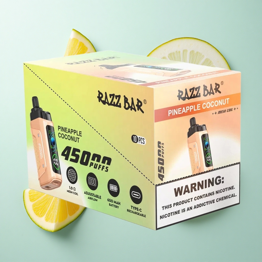 O Razz Bar 45000 Puffs Disposable Vape é a escolha perfeita para quem busca longa duração e desempenho excepcional. Com até 45000 puffs, uma bobina Mesh 1.0 Ohm para um vapor intenso e saboroso, e fluxo de ar ajustável, este vape oferece uma experiência personalizada. Além disso, sua bateria recarregável 650mAh via Type-C e a resistência de nicotina de 20 mg/ml garantem conveniência e satisfação prolongada.